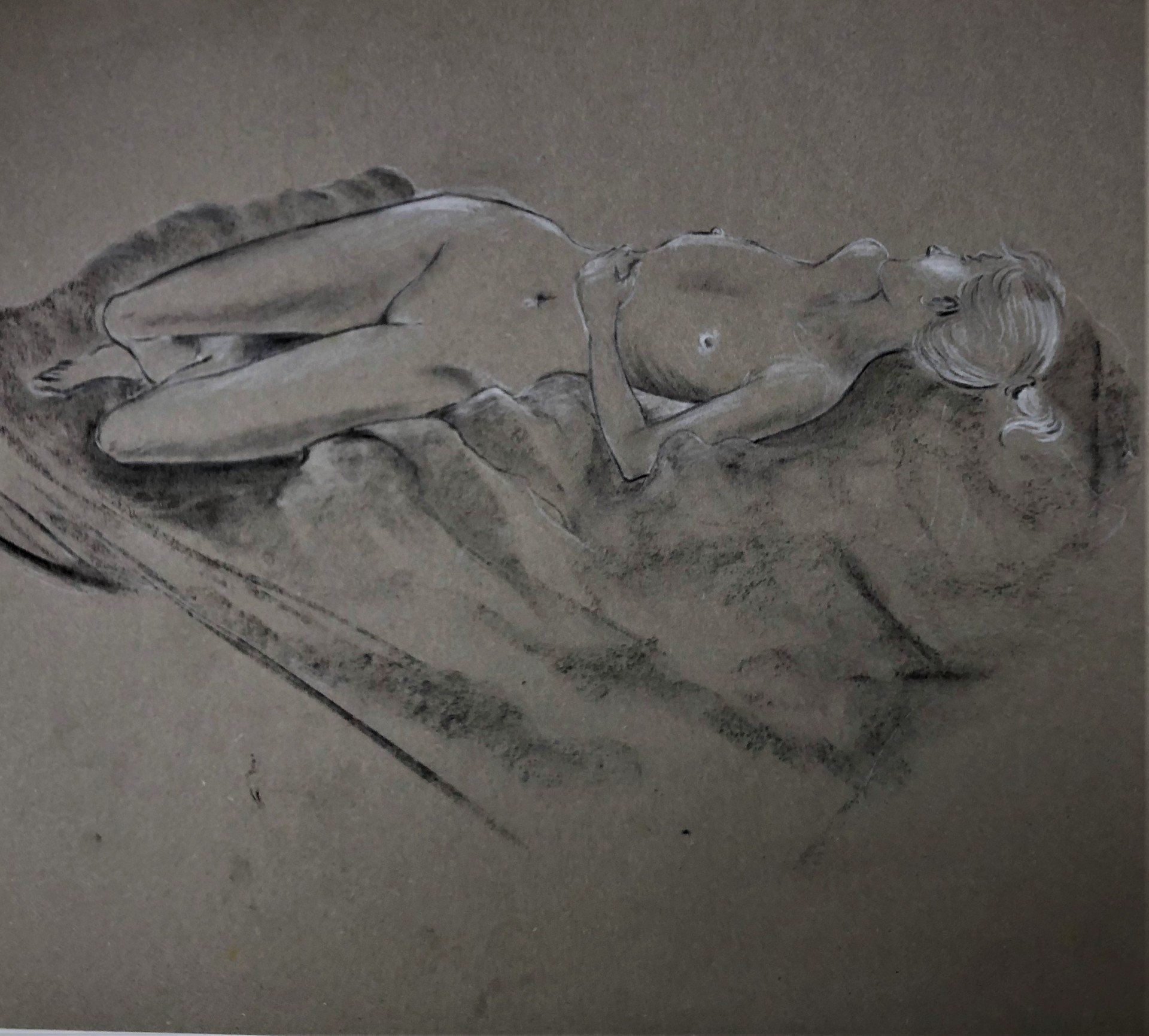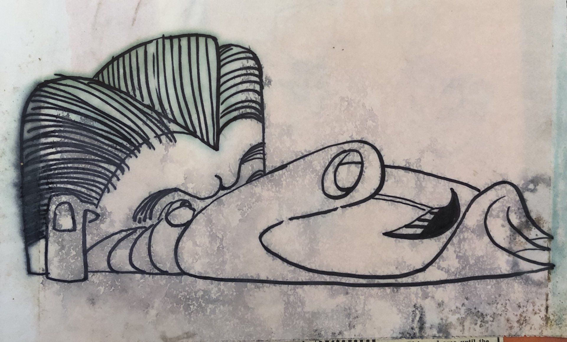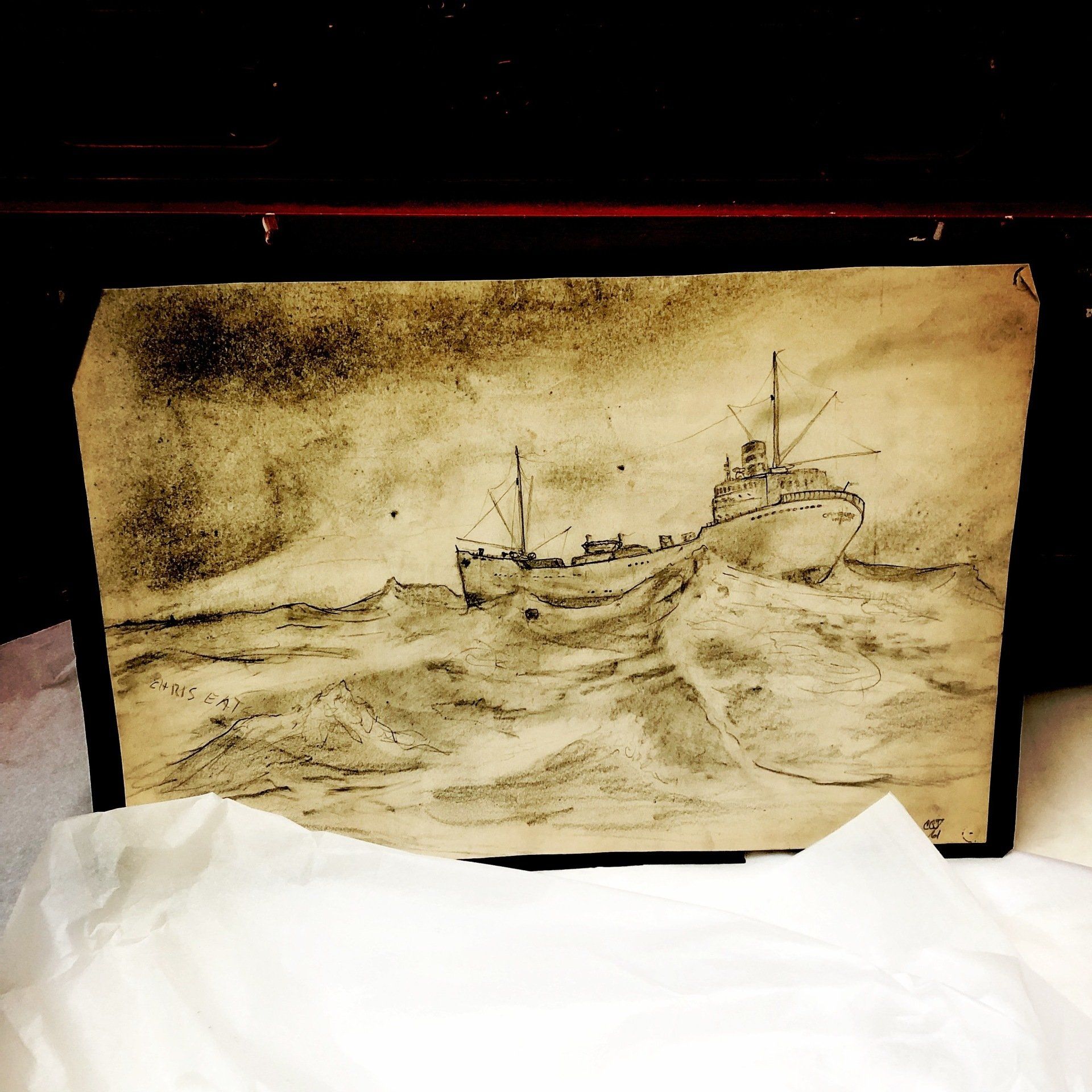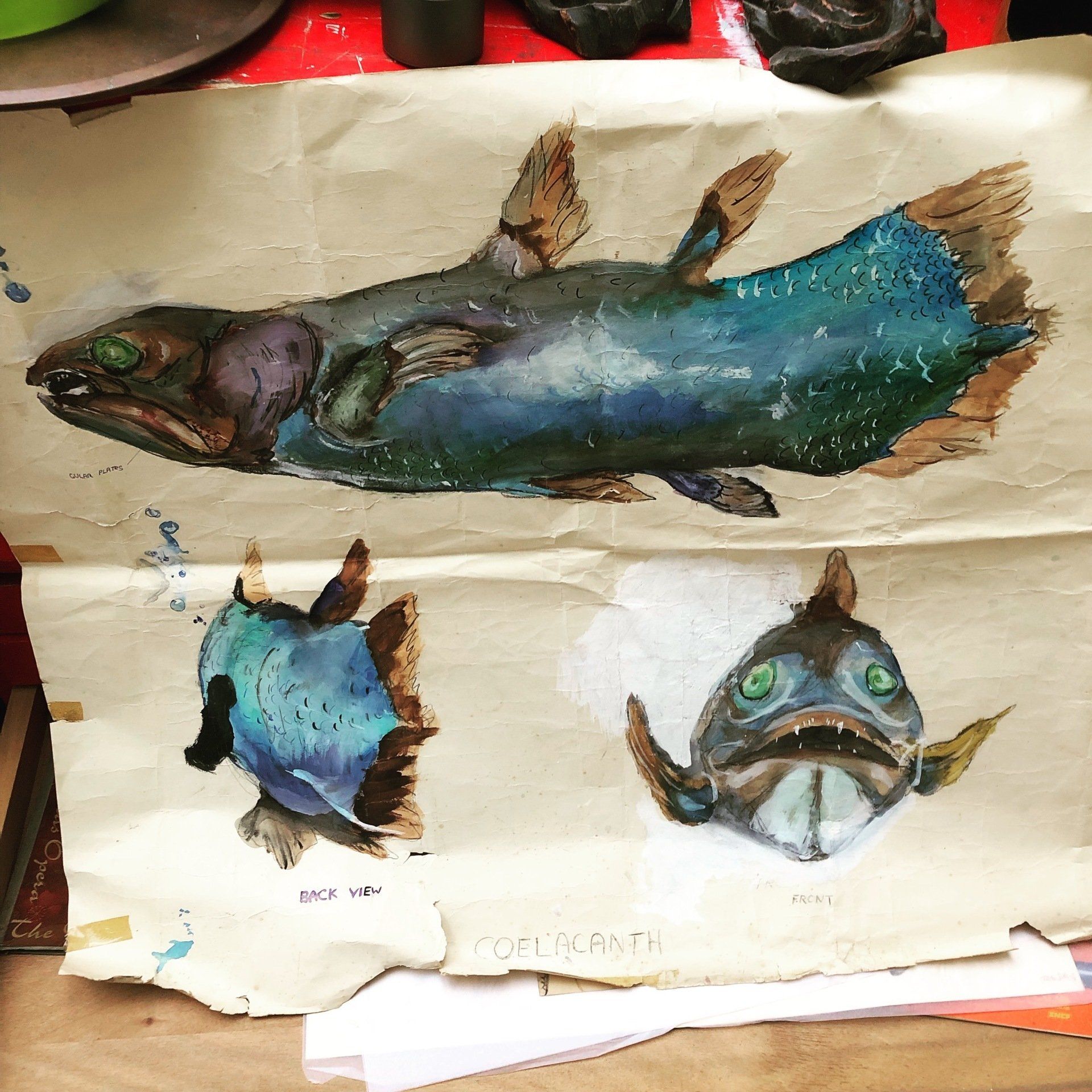 On our second trip to England, when I was 13, we lived a block away from the Natural History Museum. I spent a lot of time there drawing dinosaurs, lions, hippos etc. This is a drawing of the Coelacanth, thought to have become extinct 66 million years ago, but found in a fisherman’s net off the coast of South Africa in 1938. That fact blew me away and I had to paint it.