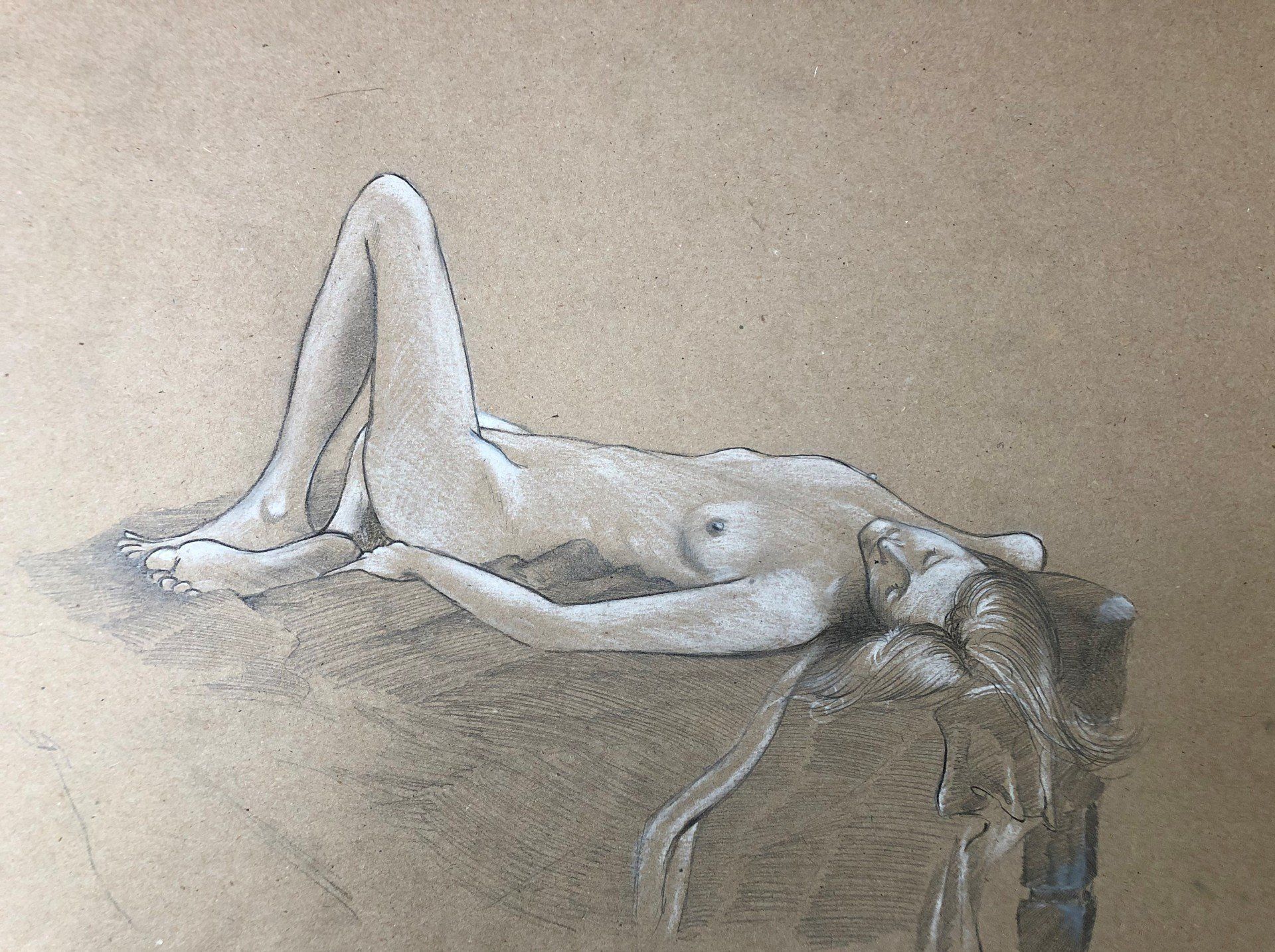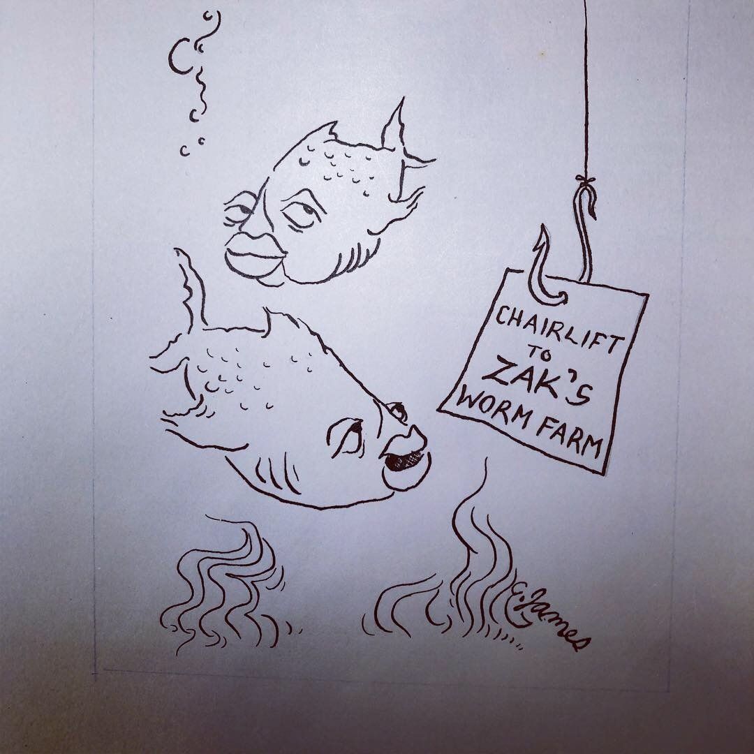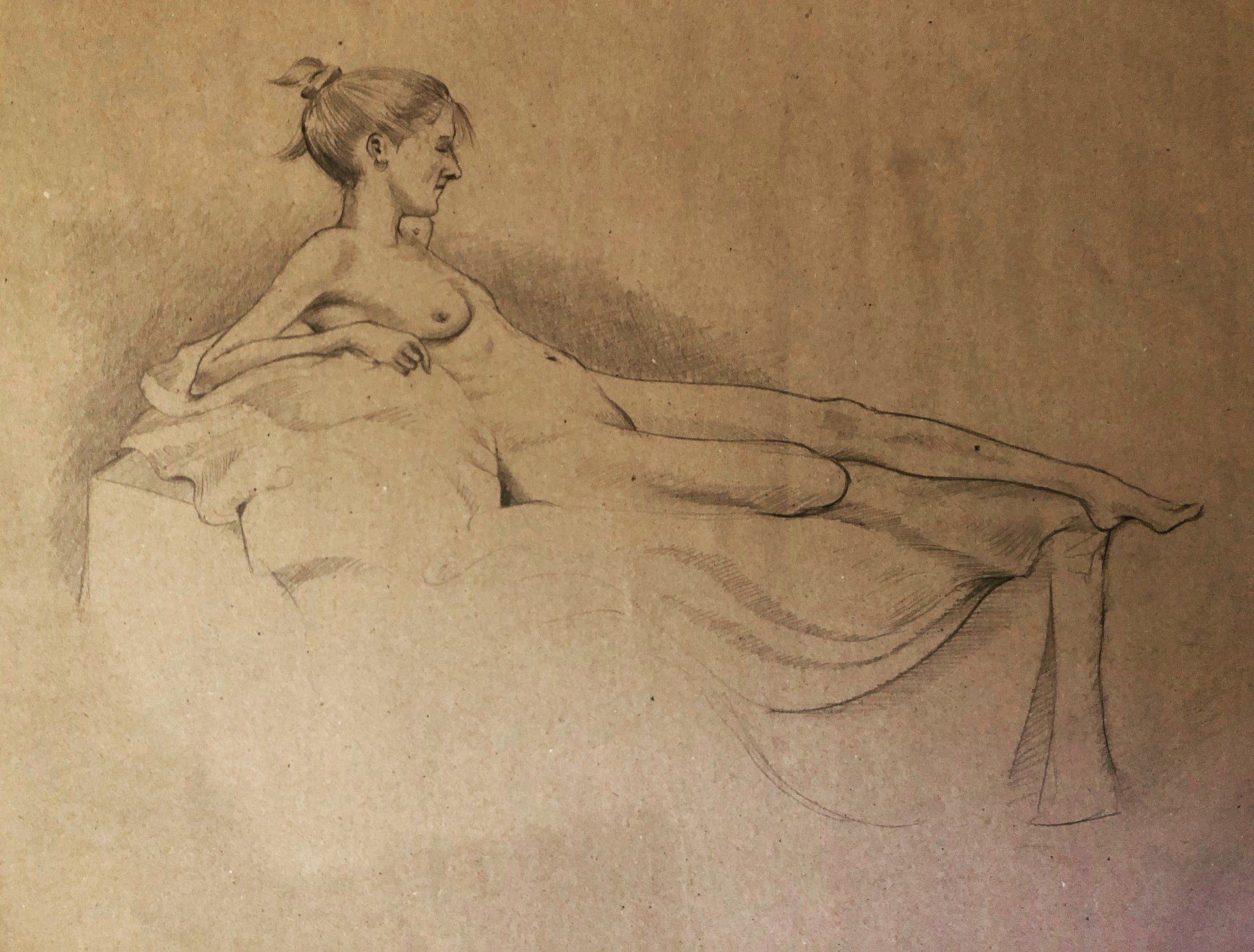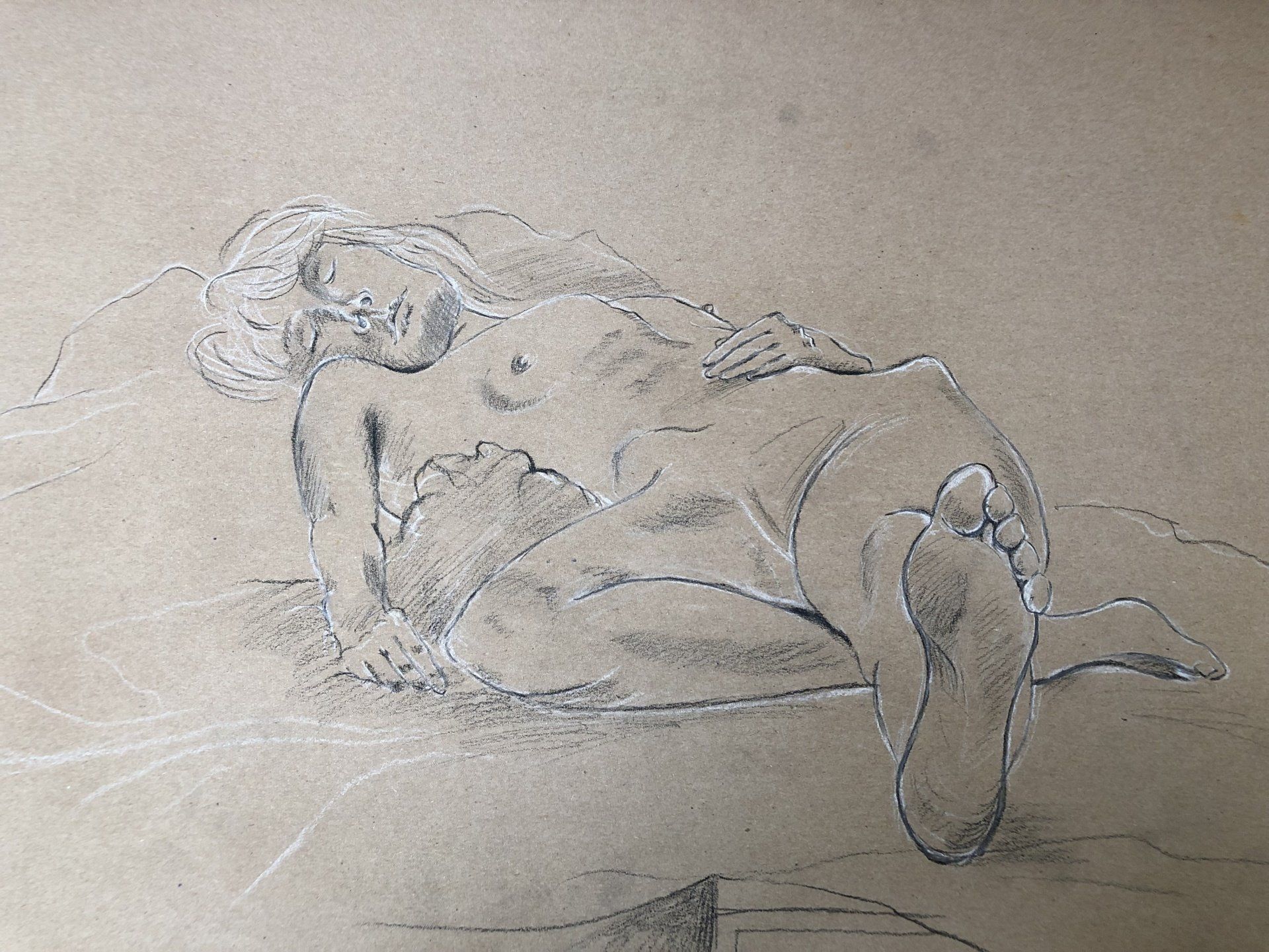 On our second trip to England, when I was 13, we lived a block away from the Natural History Museum. I spent a lot of time there drawing dinosaurs, lions, hippos etc. This is a drawing of the Coelacanth, thought to have become extinct 66 million years ago, but found in a fisherman’s net off the coast of South Africa in 1938. That fact blew me away and I had to paint it.
