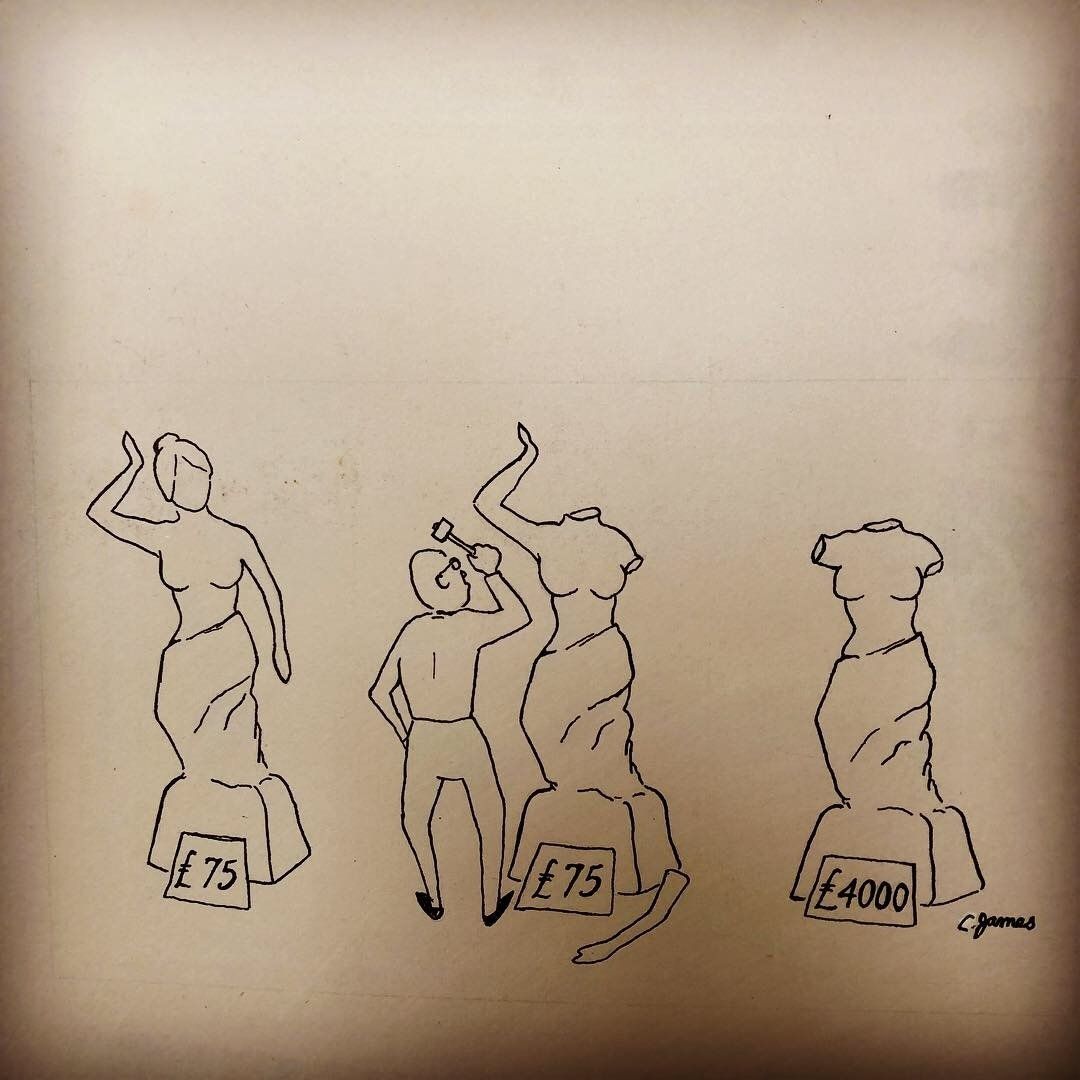 When I was 16, I spent the summer with my grandmother in Sewanee, Tennessee, and took a summer art class. Sewanee was a university town and offered all the opportunities one could want in their summer program (I also took typing, which I didn’t want). Here are some of my pieces from that time: a tree; a bust of Voltaire; studies of a cement plant; various abstracts.
