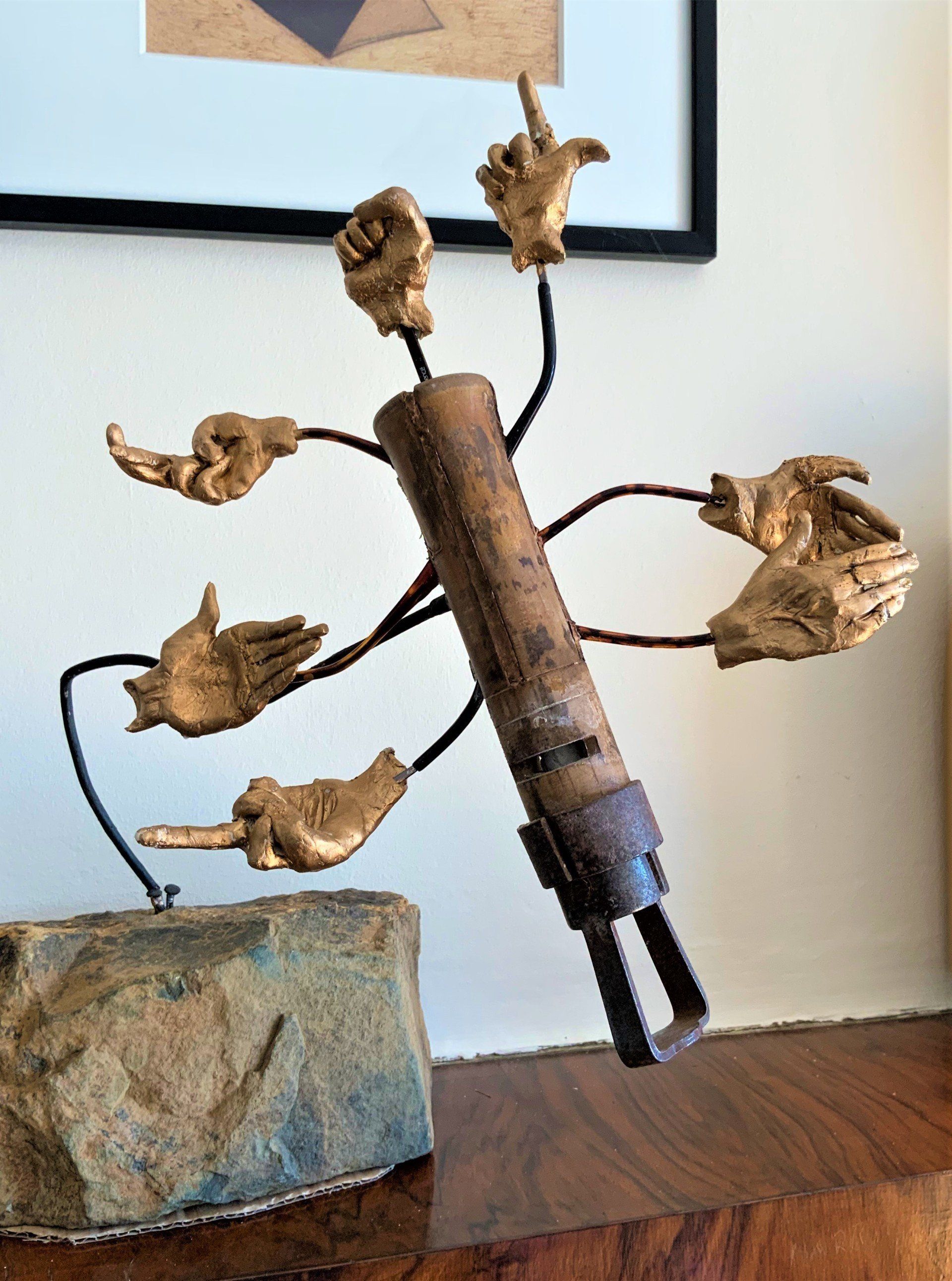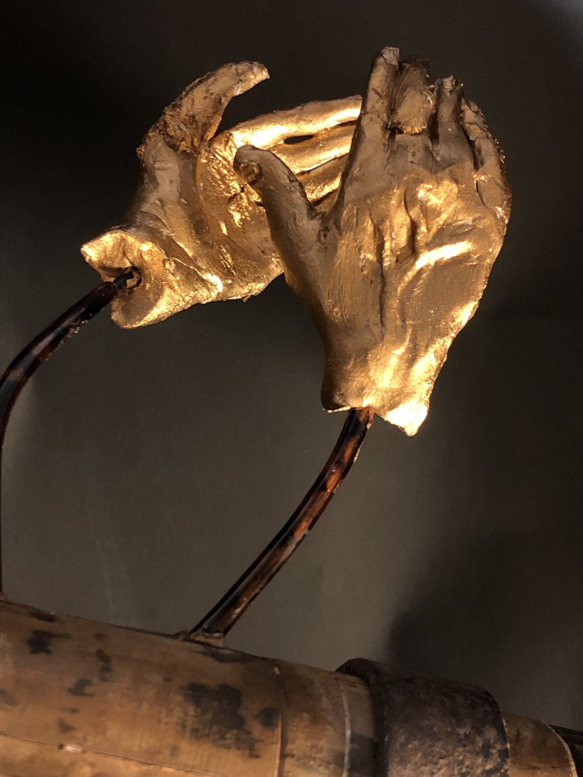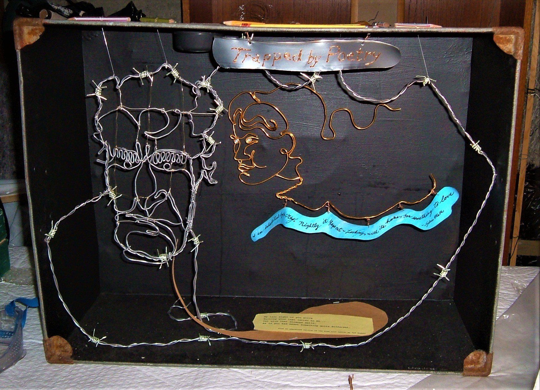 Ted Hughes and Sylvia Plath met at Cambridge University. They were introduced by my uncle, the historian Bertram Wyatt-Brown, who, like Plath, was a Fulbright Scholar and fellow American. This sculpture tries to depict the relationship between Hughes and Plath – one a dominating, subjugating, overpowering man, the other a depressive, introspective, melancholy woman, trapped by her partner in poetry and eventually driven to suicide.